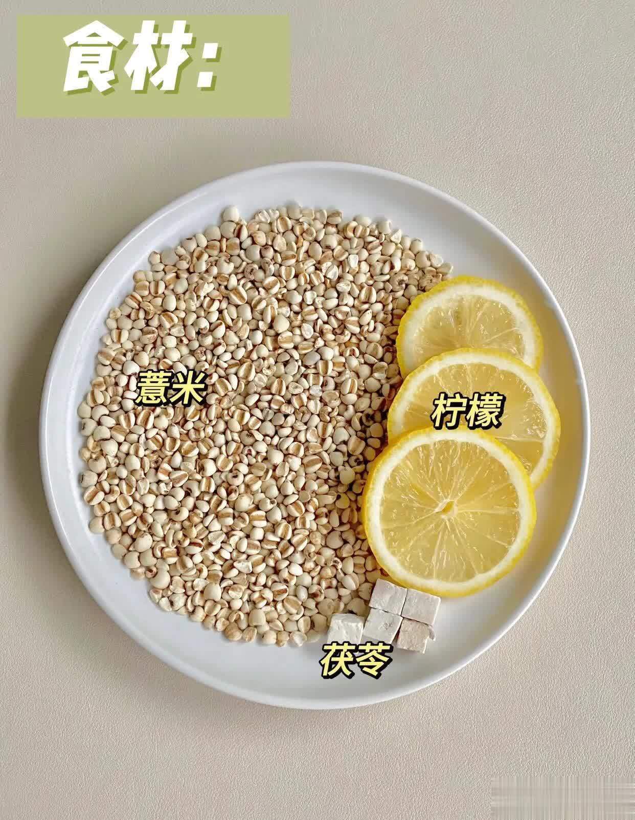食材:薏米、茯苓、柠檬(记得薏米要先炒一下,去寒性更温和!)